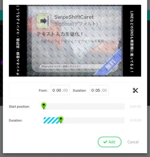 動画のURLを乗せると開始時間と終了時間を設定できます。